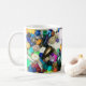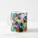 Panel of beads of different sizes, types, and colours wraps around entire mug.