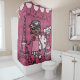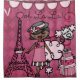 Shower curtain that's perfect for the little diva, features an African American diva in a pink dress, Eiffel Tower, pink poodle dog, pink flags banner, stacked hat boxes, and text that reads Ooh La La!