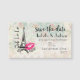 A romantic magnetic business card with a vintage style "save the date" wedding reminder. A lovely vintage pattern background with faint roses and other decorative elements. Layered over top is an illustration of the eiffel tower and Ooh La La written sideways. A hot pink lipstick impression left beside the famous landmark with the text xoxo! Customise with the bride and groom's name and their wedding date.