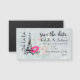 A romantic magnetic business card with a vintage style "save the date" wedding reminder. A lovely grey vintage pattern background with faint roses. Layered over top is an illustration of the eiffel tower and Ooh La La written sideways. A hot pink lipstick impression left beside the famous landmark with the text xoxo! Customise with the bride and groom's name and their wedding date.