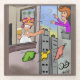 This funny cartoon about laundry flying in a man's face, was created by the renowned artist, D.B.