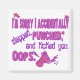 I'm sorry I accidentally slapped, punched, and kicked you. Oops. Great for people with anger management issues. Place this where somebody you wouldn't mind "accidentally" slapping can see it.