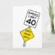 On the birthday card, there is a visually captivating picture of a speed limit sign that has a bold, black and white design. The sign's iconic number "40" is prominently displayed in the center. Beneath it, there is a smaller yellow sign that says "Oops, you hit forty!" in bold, playful letters. The pole seems to be slightly bent or crooked, indicating that it might have been struck by a vehicle at some point.