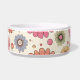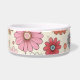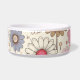 Multi-coloured retro-inspired daisy food/water bowl is a cheerful print for your favourite fur baby. Matching leash, collar, and other accessories.