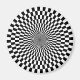 A two toned circular Op Art style design which is made up of circles of rays, each offset to create an alternating pattern.
