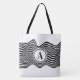 Op art with black and white wavy lines and letter tote bag