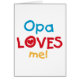 Opa Loves Me T-shirts, cards, stickers, bodysuits bags, and more with colourful red, yellow, and blue text and heart design. These Opa Loves me apparel and gift items will make opa smile!