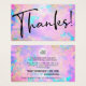 Thank you for your purchase customer discount card package insert in a relaxed casual and flirty font and modern style. Fully customise the text and social media icons for your brand. Thank your clients and customers for shopping with you by including this with your packages and products to say Thanks and to give them a coupon code for a future purchase to encourage repeat business and to find you on social media. You can add or remove social media icons (Twitter, Instagram, TikTok, Pinterest, Snapchat, Youtube, Facebook, LinkedIn) by choosing "customise further" and turning them on/off in the layers panel and you can edit the colours too!