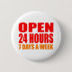 Open 24 Hours 6 Cm Round Badge