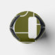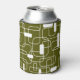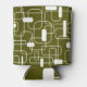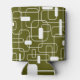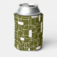 This can cooler has a mid-century modern design of open and closed rectangles in white on a field of camo green.