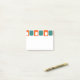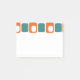 This Post-It notepad has a mid-century modern design of repeating orange rectangles with white rectangles inside alternating with teal rectangles.
