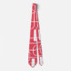 This tie has a mid-century modern design of open and closed rectangles in white on a field of red.