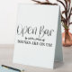 Open Bar Drinks Are On Us Table Tent Sign. A fun, modern, typography sign for your wedding or engagement table.