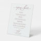 It is sturdy than I expected. Was worried about the material being flimsy but it is not. It is printed on some sort of plastic material. It should serve well at our wedding as long as wind isn’t too bad. Otherwise we will put some paper weights behind it and should be fine.