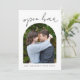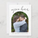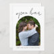 Announce your wedding with personality using this funny wedding save the date postcard featuring a modern arch photo design and the cheeky phrase: "Open Bar and Our Happily Ever After." It's the perfect way to let your guests know that love (and laughter) are on the menu.