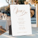 "Open Bar" Modern, Calligraphy, White, Wedding Drink Menu Sign. Personalised in minutes. Add your data, and you can select the font, colour, size and position individually by clicking "Personalise more".