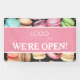 A beautiful business promotional We're Open banner template featuring a colourful watercolor French macarons print. This template can be easily updated for your patisserie, bakery, cafe or any other business. If you need assistance with your personalisation, additional items for your business or custom orders, feel free to contact me using the message button.