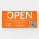 Let everybody know your business is now open with this fully customisable simple and modern orange OPEN outdoor banner. Simple update your business logo, newsletter subscription message, website qr code and company contact information.