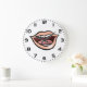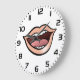 Keep time with style using this open mouth cartoon graphic clock. Featuring the expressive illustration of stylized lips, teeth, and tongue, this clock adds a bold, unique design element to any room, studio, or office. Perfect for musicians, speech therapists, or fans of vocal art and expressive humor. The vector drawing graphic creates a striking piece of wall decor that is both functional and a conversation starter about human expression.