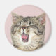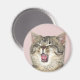 Brown tabby kitten with it's mouth open in a big tongue curling yawn, or maybe he's singing to you, photo magnet.