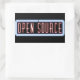 Red white and blue neon sign that says open source. Glowing letters, computer related, programming, geeky, nerdy.