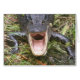 A hungry North American Alligator, ( Alligator mississippiensis),opens wide to show his choppers to visitors at the Corkscrew Swamp Sanctuary near Naples, Florida. STATUS: The North American alligator was almost hunted to extinction in the first part of the 20th century. Hunters killed them for their skins, which were used to make belts, purses, wallets, and shoes. Today, the United States government protects this alligator, and while they are still being hunted, all hunting is controlled by permit. Once listed as an endangered species, the North American alligator populations are now increasing in some areas. PHYSICAL CHARACTERISTICS: Adult males range from seven and 10 feet in length, although rare individuals may reach as much as 19 feet. Females are considerably smaller. Eyes, ears, and nostrils are located on top of the head, so that the alligator is able to see, hear, and breathe while almost totally submerged in the water. Special adaptations in the alligator’s mouth allow it to open its jaws underwater to catch prey without getting water into its lungs and possibly drowning. These alligators have webbed feet—skin between their toes—that help them in the water. But when swimming, it is the powerful tail that’s used to move through the water, with the legs serving as a rudder. The muscular tail is also a powerful weapon of defence. HABITAT: The American alligator is found in fresh and slightly salty waters of coastal marshes, swamps, rivers, lakes, and man-made canals in the southeastern United States, from eastern Texas, east through Louisiana, southern Mississippi, Alabama, and Georgia, and north into the Carolina coastal regions, and south to the tip of Florida. Their name comes from early Spanish explorers of North America, who called them "el lagarto," Spanish for "the lizard." North American Alligators can live up to 50 years.