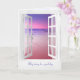 open white window with purple and pink ocean sunrise scene for thinking of you