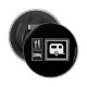 Eat sleep RV!  Black and white icon style road sign graphics. Keep this handy magnetic button style bottle opener on any metal surface in your recreational vehicle for your camping beverage drinking pleasure.