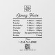 A black script opening business hours window decal and window cling featuring business logo, QR Code, your custom social media icons and contact details. A personalised shop hours window cling perfect for shop windows and front door signs. Perfect for a business shop owner who would like to notify their customers about its opening hours.