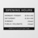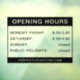 Black and transparent opening hours window cling. Colours and fonts can be changed with the design tool.