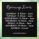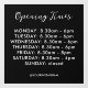 A simple custom business opening hours vinyl window cling decal sign template in a modern minimalist style. This professional template allows you to easily design a custom opening times list for your store, salon, restaurant, cafe or any other business.