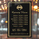 Display your business hours to clients and customers with this stylish window cling. A vintage-inspired design featuring classic typography and a simple art deco border. This professional template is personalised with your company logo, opening times, telephone number, and website. It offers fully customisable text to fit your business brand. You can also change the background colour by using the design editor tool. This adaptable design is ideal for a variety of establishments, stores, offices or services, including restaurants, cafes, salons, boutiques, dry cleaning services, and more! Printed colours: black and gold colour. If you’d like your logo to coordinate with the gold type colour, the Hex colour code is #DEBE79