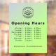 Elevate your storefront with our elegant and modern "Opening Times | Monogram Opening Hours Window Cling." Perfect for small businesses, restaurants, cafes, and boutiques, this decal features a Light green gradient design that effortlessly complements any decor. Customise it with your business logo, monogram, QR code, phone number, and opening hours to create a professional and welcoming entrance for your customers.