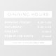 Opening hours window cling featuring white or custom colour text on a transparent background. Colours and fonts can be changed with the design tool.
