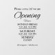 A simple custom business opening hours vinyl window cling decal sign template in a modern minimalist style on a black background. This versatile template allows you to easily design a custom opening times list for your store, salon, restaurant, cafe or any other business. Need help? Feel free to contact me using the message button. I am happy to help with your personalisation, additional items or custom orders.