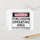 Danger, Percussion Operating Area! Ear Protection Required! This is fair warning to anyone around the percussionists. See all our musical designs on on cups, mugs, tee shirts, sweatshirts, hats, and other gifts and clothing.