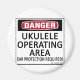 Danger, Ukulele Operating Area! Ear Protection Required! This is fair warning to anyone around musical instruments. See all our musical designs on on cups, mugs, tee shirts, sweatshirts, hats, and other gifts and clothing.
