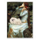 Ophelia (seated) by John W. Waterhouse (1898), adapted to include a white or cream coloured Pekingese. Waterhouse based this painting on Shakespeare's Ophelia.