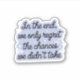 This uplifting and motivational design features the inspiring phrase, "In the end, we only regret the chances we didn’t take," set against a soft, dreamy background of stars and moons. Perfect for those who believe in taking risks and living life to the fullest, this sticker serves as a daily reminder to seize every opportunity. Its whimsical design and elegant lettering make it a beautiful addition to laptops, water bottles, notebooks, or any item that needs a touch of inspiration. Available now on zazzle, this sticker is a must-have for anyone looking to stay motivated and make the most of every moment. Don’t let your dreams slip away—order yours today!