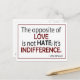 An Elie Wiesel quote: "The opposite of love is not hate; it's indifference."