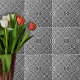 Cool unique decorative tile design featuring a mosaic pattern in op art style composed of black and white geometric shapes.