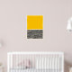 Abstract art with an optical illusion affect with bold yellow block, black wavy lines and a beige border.