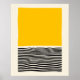 Abstract art with an optical illusion affect with bold yellow block, black wavy lines and a beige border.