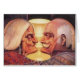 Card with an optical illusion "An old man and an old woman or a man playing the guitar and another man dancing?"