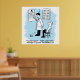 Optician giving eye-test confirms that the wall chart does indeed say "Printed in China". Patient reading an eye chart on the wall. Funny optometrist cartoon. Gift for an o-tician. Optician's waiting-room wall poster.