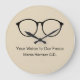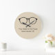 Optometrist office waiting room office clocks with image of an eyeglass frame and slogan and eye doctor name templates you can replace with your own. Designed as a clock to keep your name in front of your patients in the waiting room or your eye exam office designed for a Ophthalmologist, Optometry office, or simple eye doctor design.