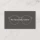 Optometrist business card design template in a modern style with an eyeglass frame on the front lightly printed in the background and Optometrist information on the details side.