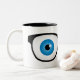 Funny coffee mug with optometry eyeball with eyeglass design. Humourous gift idea for the eye doctor, optician or optometrist.