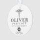 It features a medical caduceus symbol towards the top. Underneath this is a spot for your gift recipient's first and last name. Right below is a special symbol for their profession along with the number of the years worked. If you do not know the number of years simply put "thank you" or a job title abbreviation (MD).