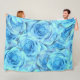 Opulent rose design in turquoise fleece blanket